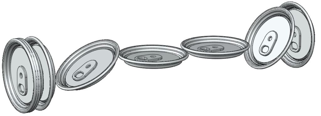 This project based in France delivers automatically generated 3D models of advanced conveying systems designed to sterilize or treat can ends (or lids) using a range of technologies, including: